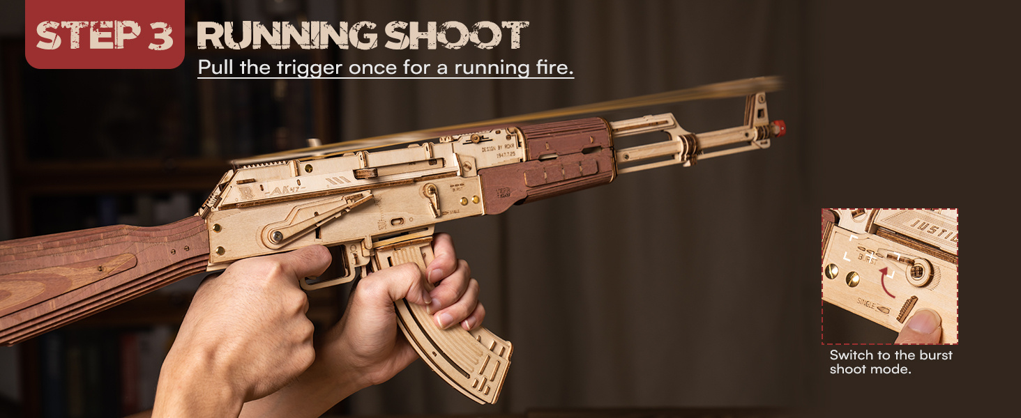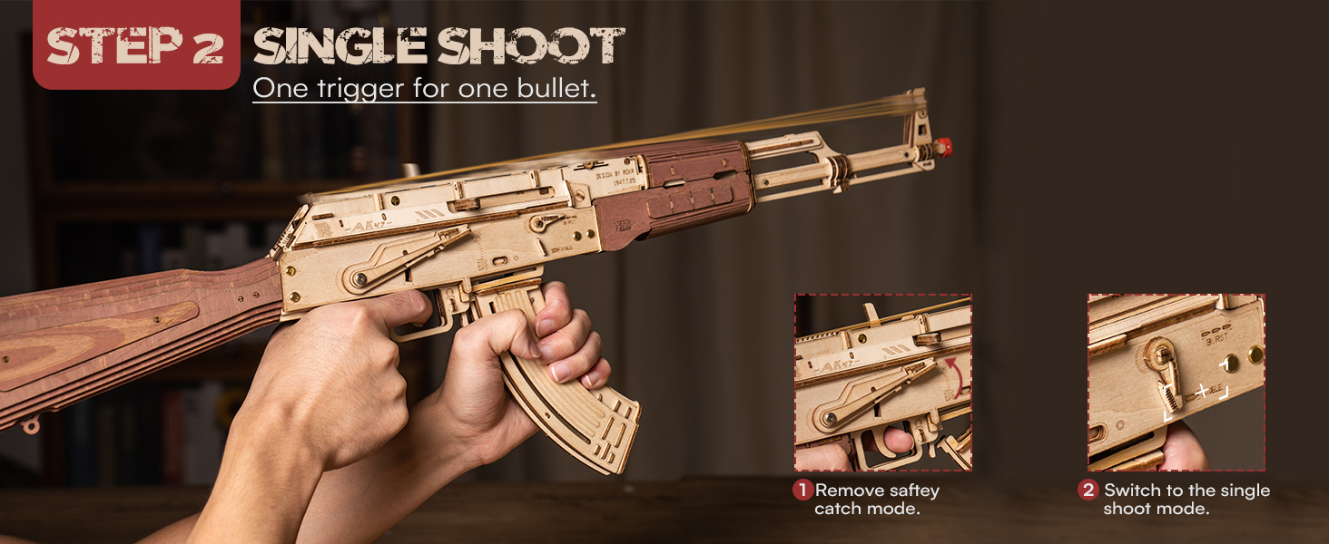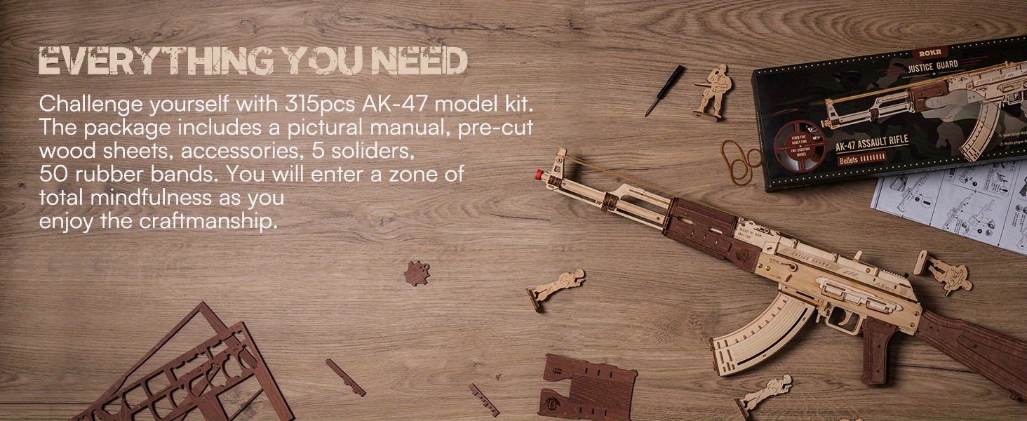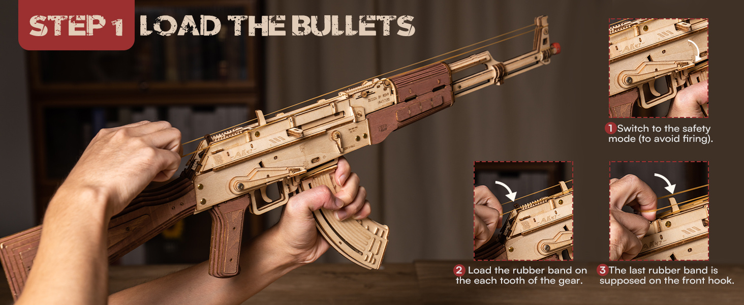 3D Puzzles for Adults, Wooden 3D Puzzle AK47 Model Rubber Band Gun Model Buildin