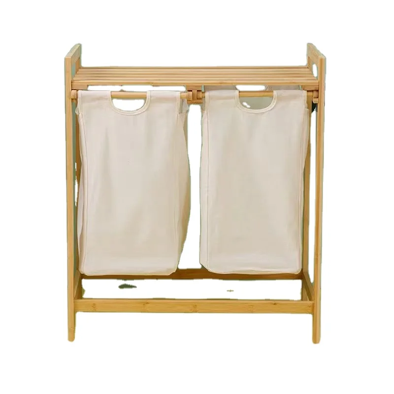 Double Draw Dirty Laundry Basket Bamboo Dirty Clothes Storage Basket Household C