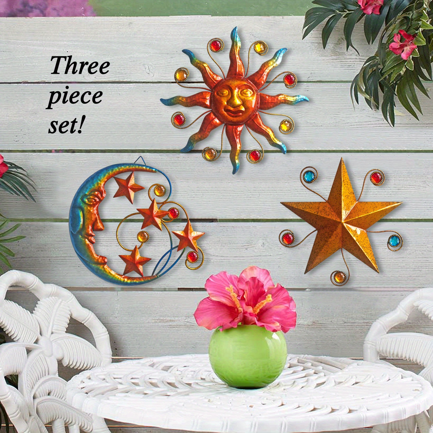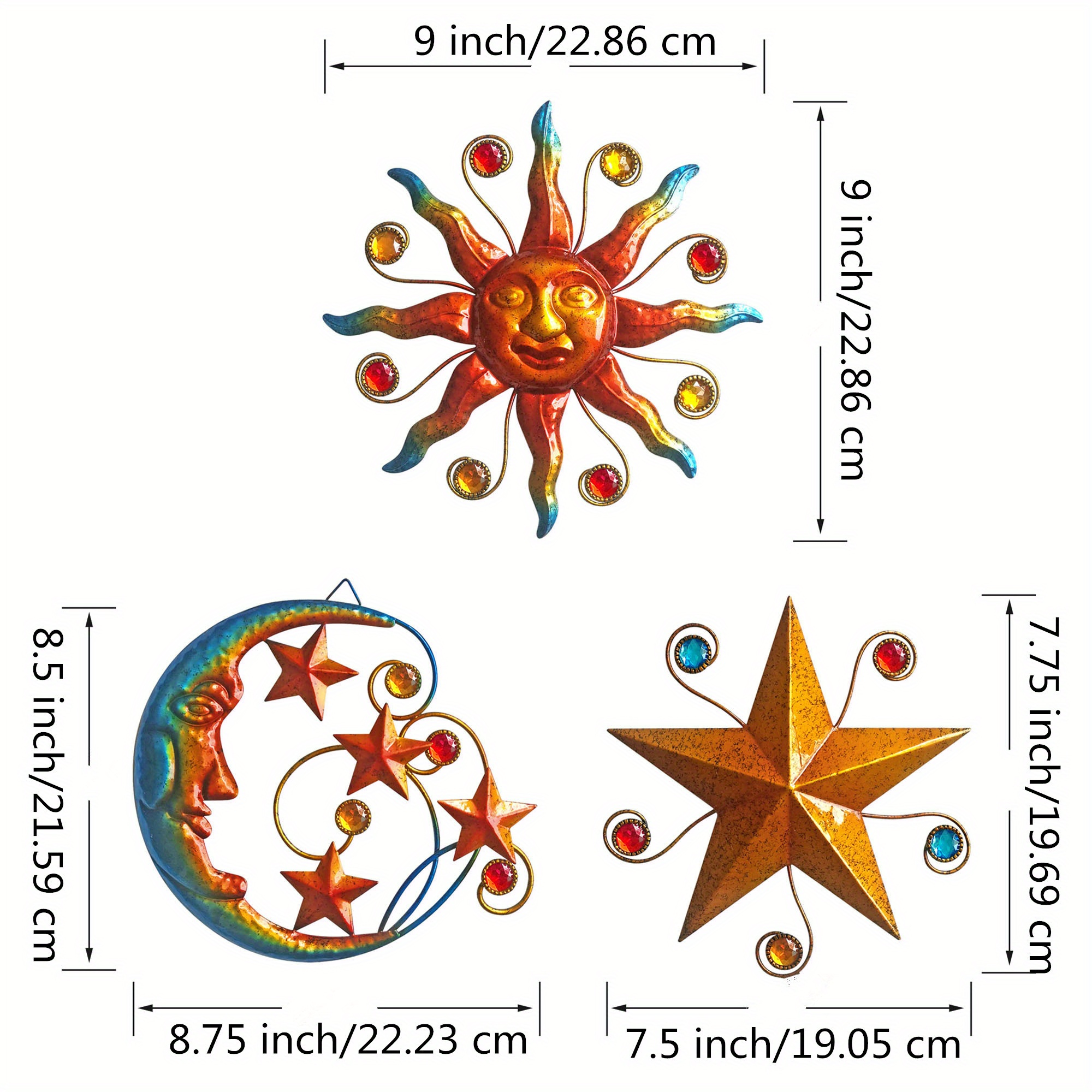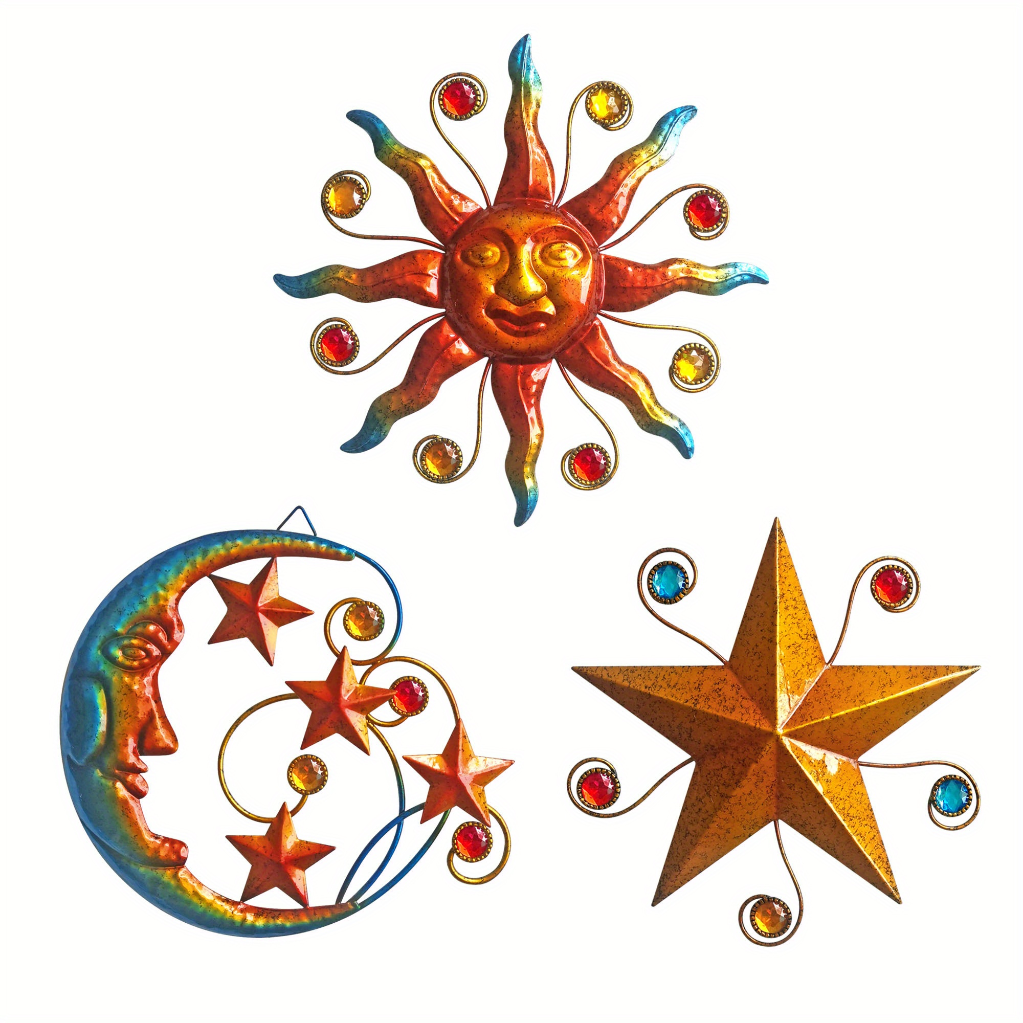 Metal 3pcs/set Celestial Wall Art Sculpture - Sun Moon Star Wall Decoration - Ch