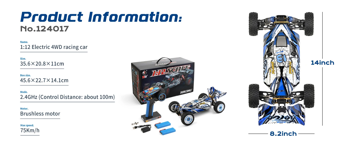 WLtoys 124017(V2) Fast RC Car, 1/12 Brushless RC Car with Independent ESC for Ad
